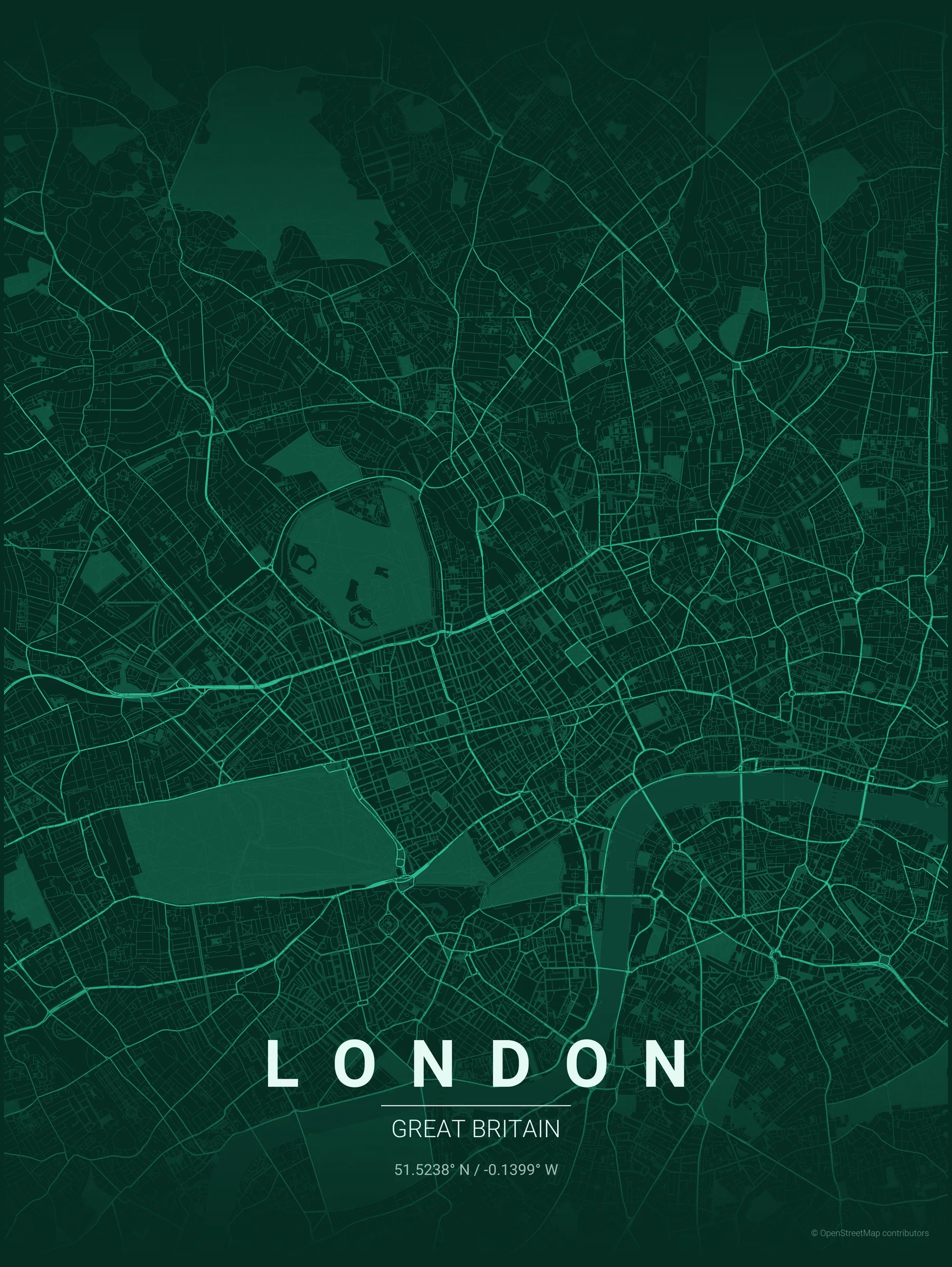 Генерирует готовый постер вашего любимого города по заданным параметрам: стиль, размер, подписи и более чем 17 разных визуальных тем.